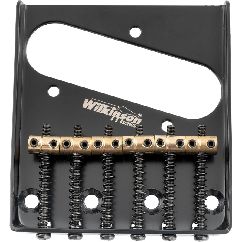 Fits Tele style electric guitars, top loading and string-through-body combined usage Total string spacing: 10.8x5=54mm (2-1/8 inch), mounting screw holes spacing: 21.6x3=64.8mm (2-35/64 inch) Steel plate and brass saddles, with 4 mounting screws holes Genuine Wilkinson parts, vintage style individual barrel brass saddles, brings better sustain, allow perfect string to string intonation especially when using hybrid string gauges Package includes: 1 piece bridge and mounting accessories
